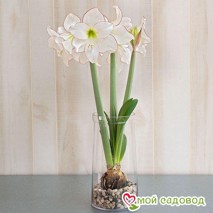Амариллис Пикоти — многолетнее луковичное растение. Изящный амариллис Пикоти поистине удивителен! Его бутоны – это шесть огромных лепестков, окрашенных в идеально белый цвет. По краю каждого лепестка проходит настолько тонкая окантовка, что кажется, вот-вот – и она разорвется. Диаметр цветка: 15 см Высота растения: 70 см.
