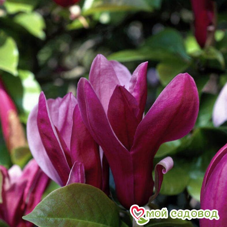 Магнолия лилиецветная Нигра или Magnolia liliiflora ‘Nigra’ — это крупный  листопадный кустарник с разветвленной кроной. Медленнорастущий, годовой прирост в высоту и ширину – 15-20 см. В высоту и ширину растение достигает около 4-х м. Листья темно-зеленые, блестящие, особенно в молодости, обратно яйцевой формы, длиной 10-15 см. Цветение начинается в конце апреля – в начале мая. Повторное цветение в середине июня, иногда длится до сентября. Цветы появляются одновременно с листьями, по форме напоминают узкую вазу. Лепестки снаружи насыщенно лиловые, внутри бледно-розовые с серовато-лиловыми вкраплениями. У этого сорта магнолий самая темная окраска цветов. Магнолия лилиецветная Нигра предпочитает гумусные, свежие, рыхлые, хорошо дренированные почвы, от кислых до нейтральных. Корни мясистые, поверхностные и очень ранимые. Обязательное окислительное мульчирование дробленной корой хвойных. Допустима только ручная прополка. Светолюбива, но выносит полутень. Относительно морозостойка. Молодые растения на зиму рекомендуется укрывать.